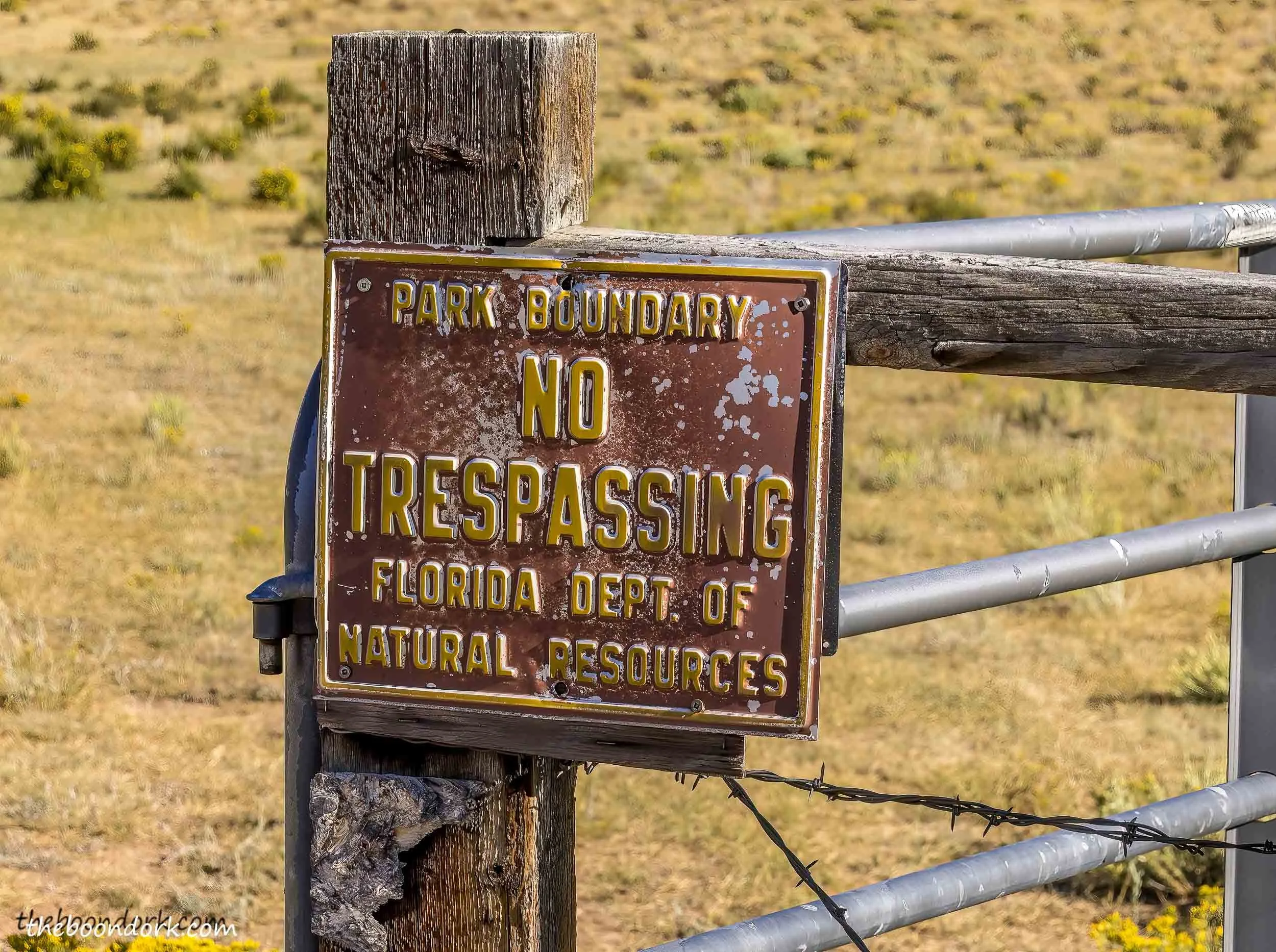 When I was living in Florida, I found an old Florida State Park sign lying in a ditch, having been replaced by a new type of sign. I took it home and found a place for it on the gate of my property. I used to tell people that my property was where the Florida Department of Wildlife brought their killer alligators to get rid of them. That wasn’t exactly true, but it gave trespassers something to think about.