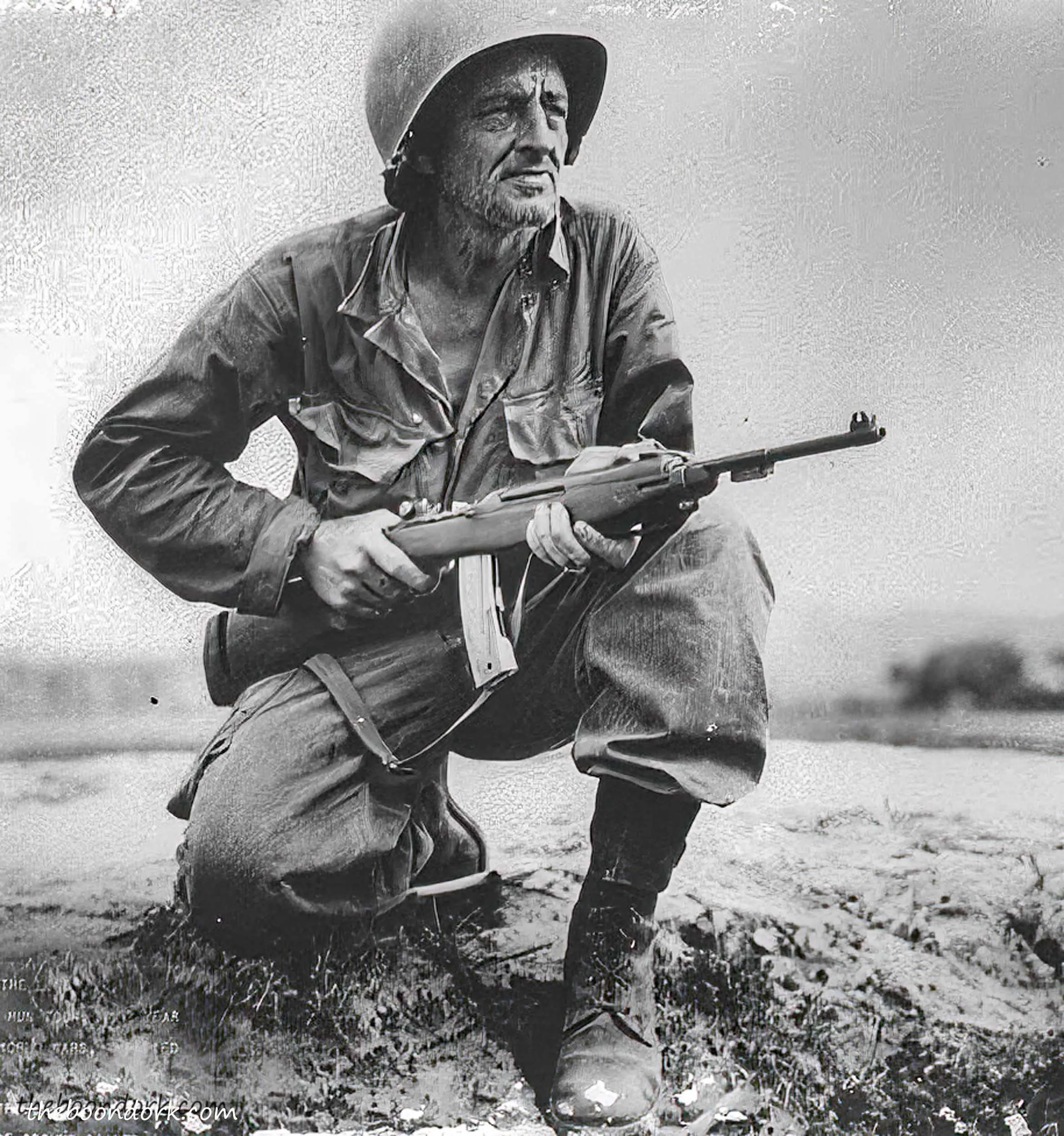 Marines raising the first flag on Mount Suribachi Iwo Jima. They all had M1 carbines.