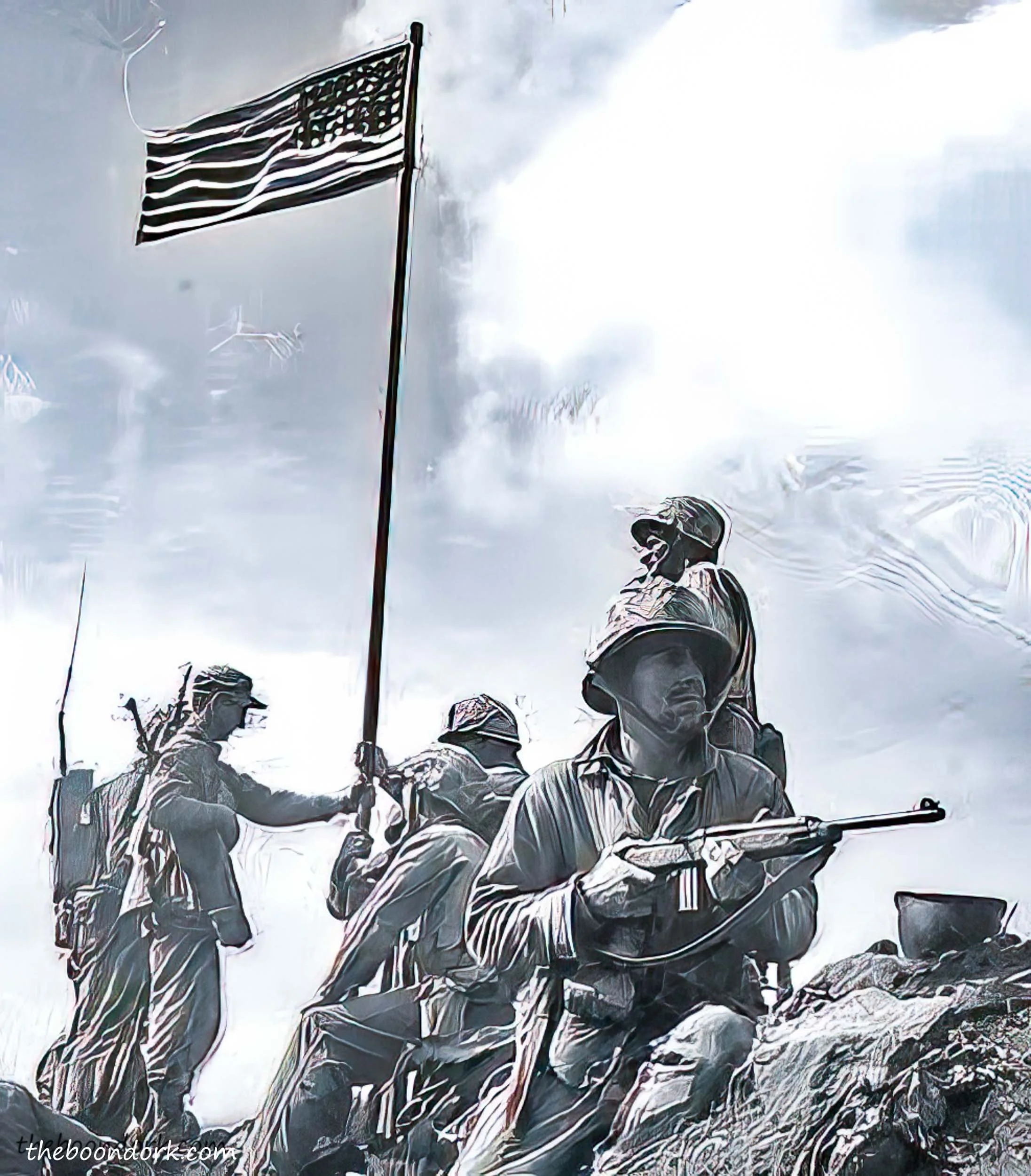 The Marines raised the flag several times that day. They raised it for the photographers, and they raised it again for the big shots that didn’t get to the top of Mount Suribachi until the shooting had stopped. But this is the photograph the world remembers, and it became one of the most famous photographs of World War II.