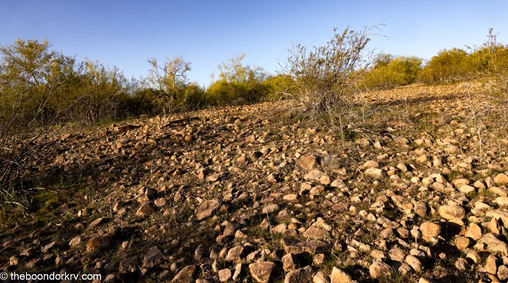 I've noticed, as I walk up and down some of these low-lying hills in this area, that the hills seem to be made out of these cantaloupe-sized rocks, hundreds and hundreds of acres of cantaloupe-sized rocks. They make walking kinda difficult, but since I'm inherently lazy, sometimes I need a challenge.