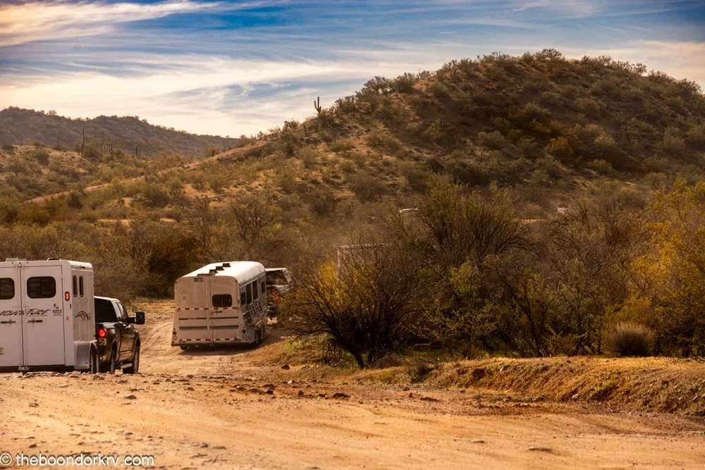 But for some reason, a dozen or more horse trailers drove by my boondocking spot heading up into the hills, see the picture below, and not wanting to be trampled by the aforementioned horses, I decided to put off my hill climbing until the horses left the area.