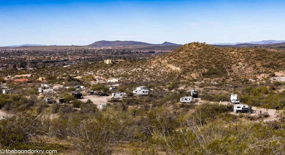 I finally made it to the top, and this is the picture I wanted to take. It shows the entire county boondocking area that I'm staying at.... In fact, that's my teeny tiny home on the far right. That's actually boondocking spot number one, so at least I had a couple of sides where I could see the desert landscape and not another RV.