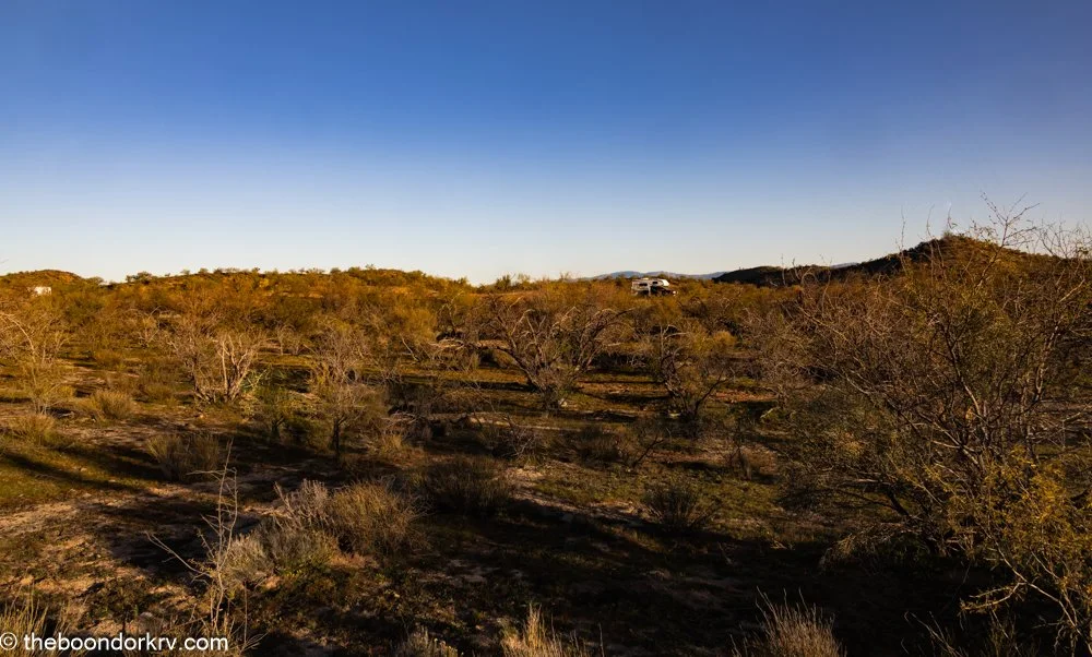 If you look in the center of this picture, you will see a white spot, which is a camper van visible from the hill I'm standing on. This shows just a little bit of all the space available in this area for boondocking.