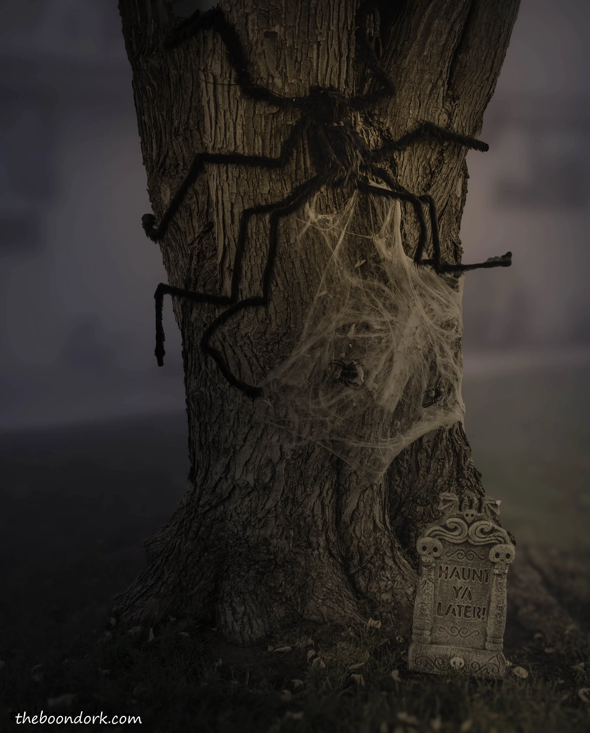 This year's family Halloween theme is a giant spider living in the yard that is eating the family.
