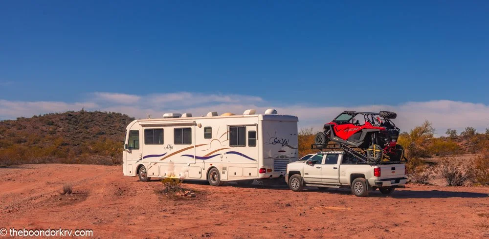 One of my boondocking neighbors is pulling out. I wonder how many things could go wrong pulling this rig down the interstate at 75 miles an hour. …. For one thing, I'll bet he doesn't pass too many gas stations without stopping.