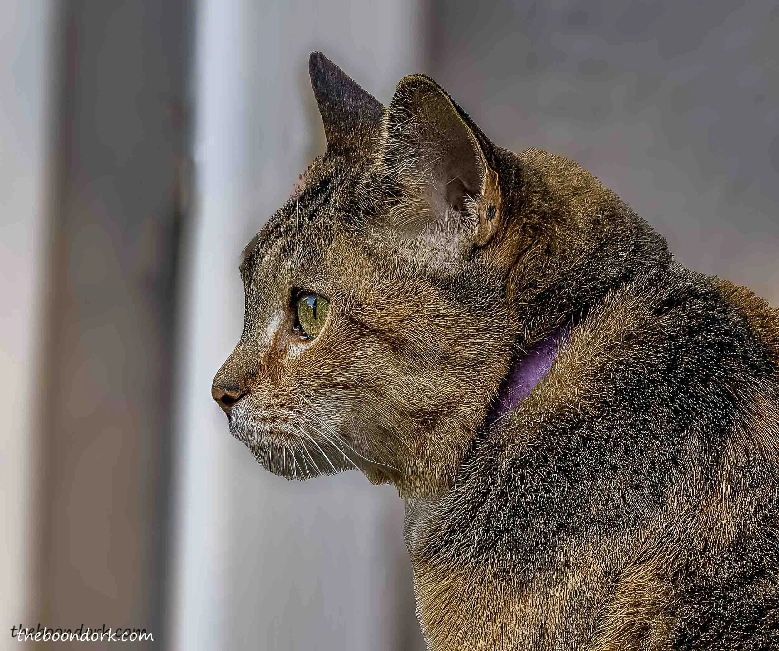 The family cat. The family cat was found as a kitten living in the national forest all alone. So she was taken home and given a good life. She was an outdoor cat, and since we were living in a house in Woodland Park, Colorado, she would spend her days roaming around in the national forest next door, living amongst the bears, mountain lions, and coyotes, and somehow managed to not only survive but to thrive. She's now about 14 years old and has no forest to roam around in, and I think she misses living in the wild; after all, that's what she was born to do.