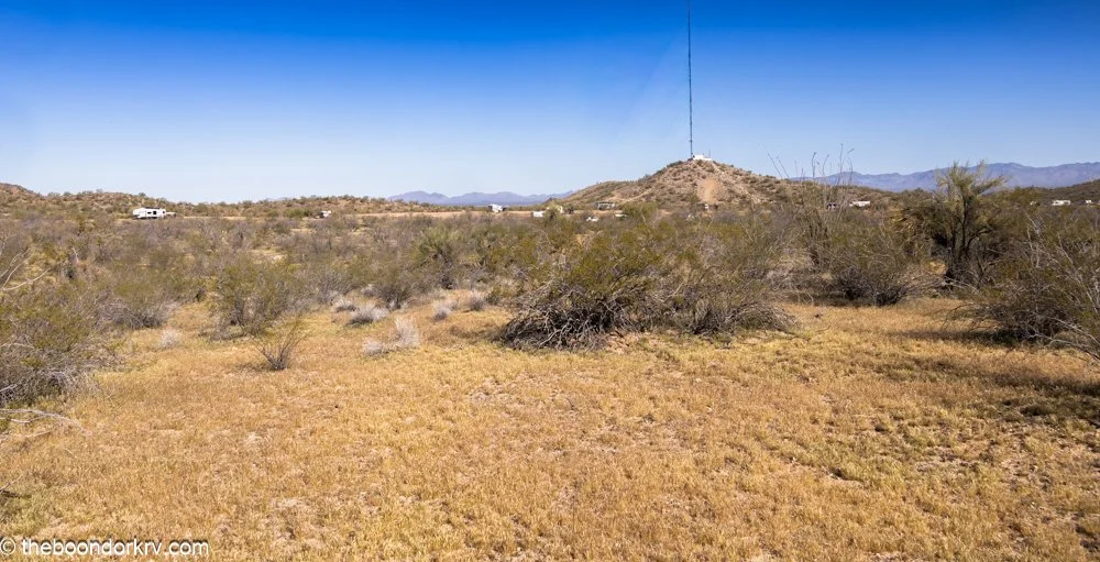 A few days ago, I was boondocked with those RVs in the background. It's okay, but it wasn't a very nice area. Fortunately, no matter what area I'm in, that huge antenna on top of the little hill gives me full bars of cell service all the time.