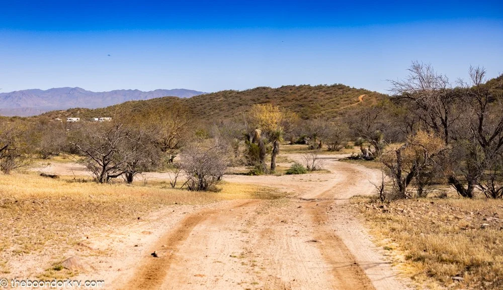 Of course, my boondocking spot is not exactly embarrassing either. It's level, it's private, there's plenty of room to spread out. And I've got a great view of Vulture Peak in the background.