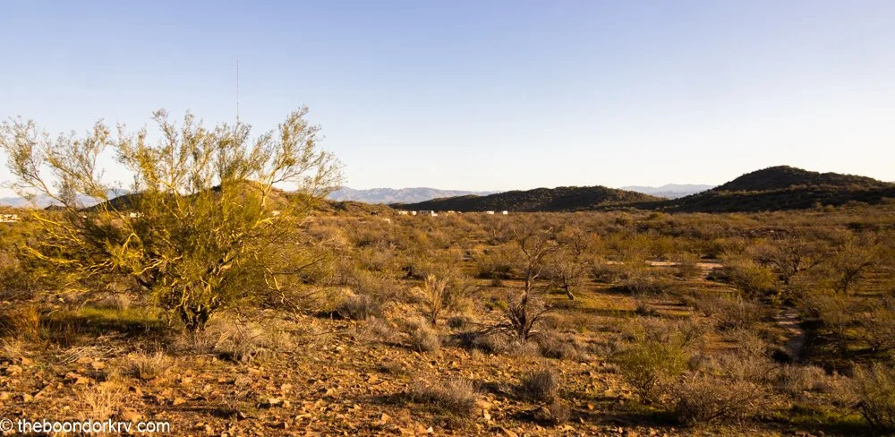 This is an overview of the Arizona Trust Lands boondocking area I'm staying at. It's far bigger than you can see here, with dirt roads and jeep trails running in every direction, offering plenty of opportunities to boondock. Off by yourself, or in a group surrounded by others. It's your choice.