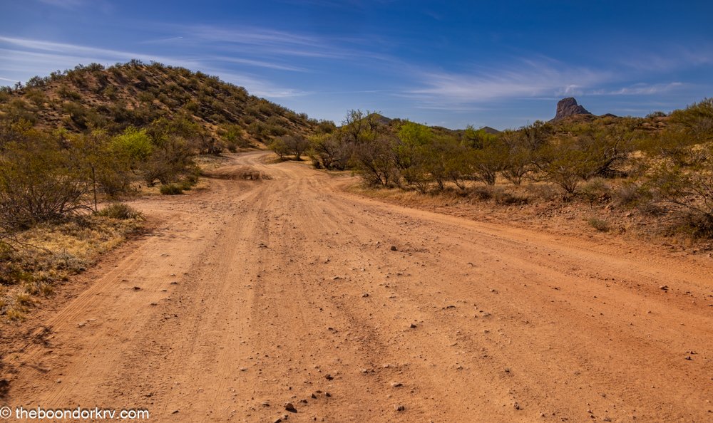 This is the dirt road that goes near the base of Vulture Peak. This is the kind of road I have to walk on now that I'm concerned about the possibility of rattlesnakes, thanks to the current heat wave.