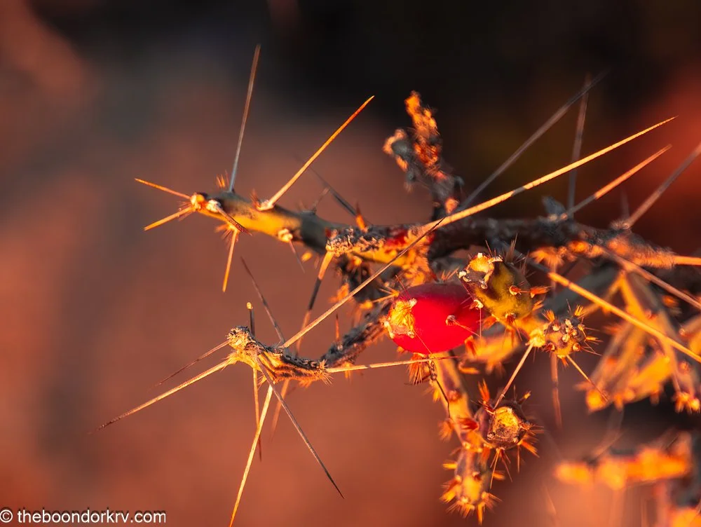 I don't know what kind of cactus this is, but the spines are two or three inches long, which seems pretty dangerous to me, since if you fell into this bush accidentally, some of these spines are long enough to reach a vital organ.
