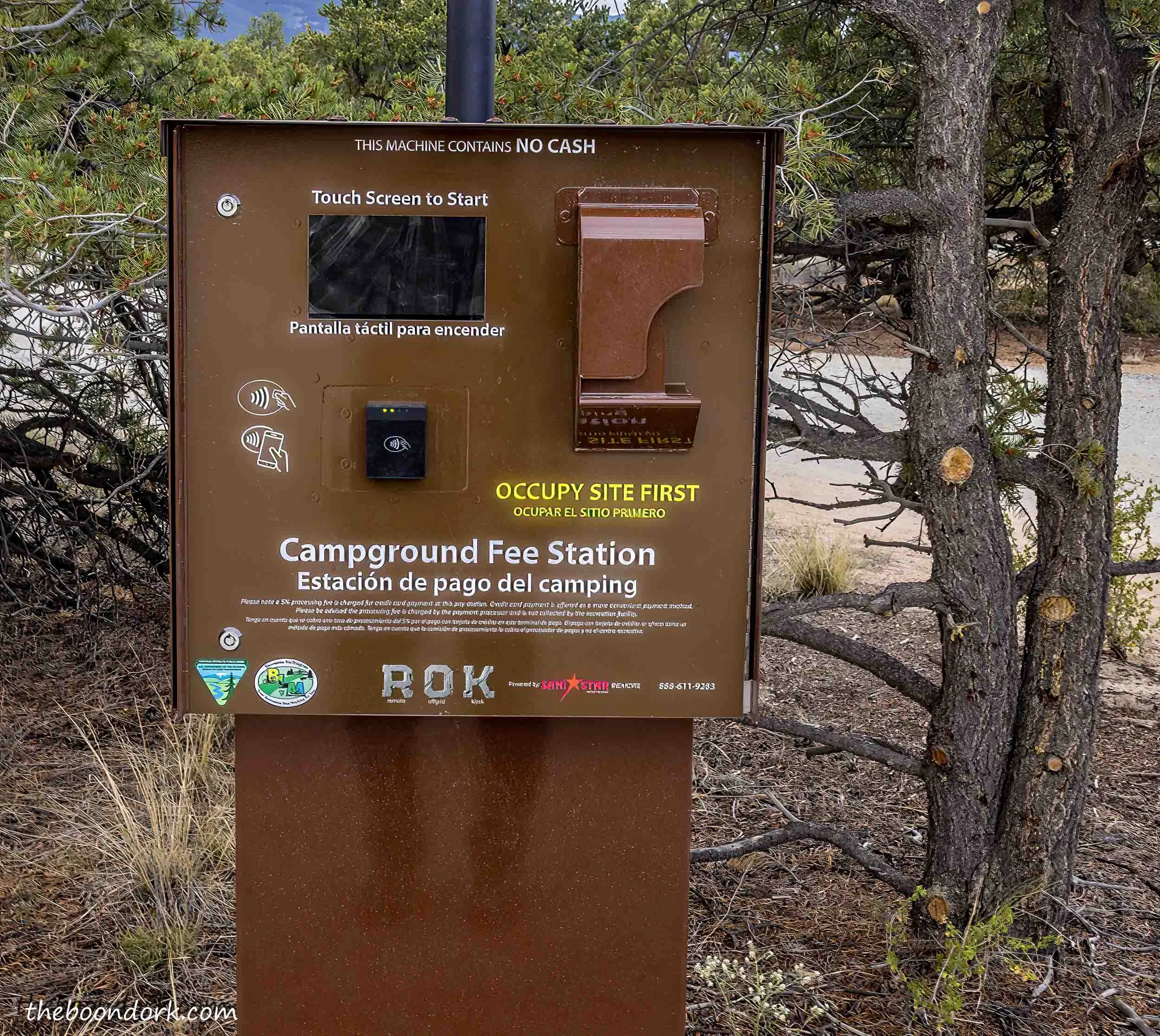 At least they made it simple to use….. Touch the screen on the left, enter the site number you’re visiting, the number of days you want to stay, and if you have a government Geezer card. The screen will instruct you to tap your credit card on the designated area. It prints out a receipt with all the information on it, including a space to write your federal discount card number, and the whole thing is powered by a 75-watt solar panel on top.