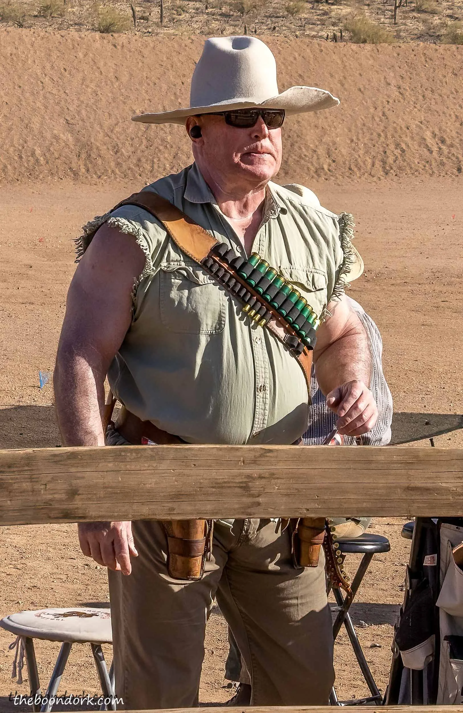 The cowboy shooters love to have cowboy names and often dress like their favorite cowboy. Those cowboys can be real or imagined, so you frequently see TV cowboys like Paladin or movie cowboys like Roy Rogers at these cowboy shoots.